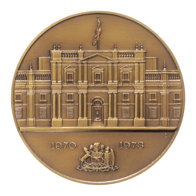 Medalla Salvador Allende Gossens (1908-1973): Presidente de Chile entre 1970 y 1973. Fue el primer mandatario socialista de Chile. Bajo su gobierno se llevó a cabo la nacionalización del cobre. Su período culminó con un golpe de Estado encabezado por las Fuerzas Armadas el 11 de septiembre de ese último año, día en que se suicidó en la casa de gobierno.