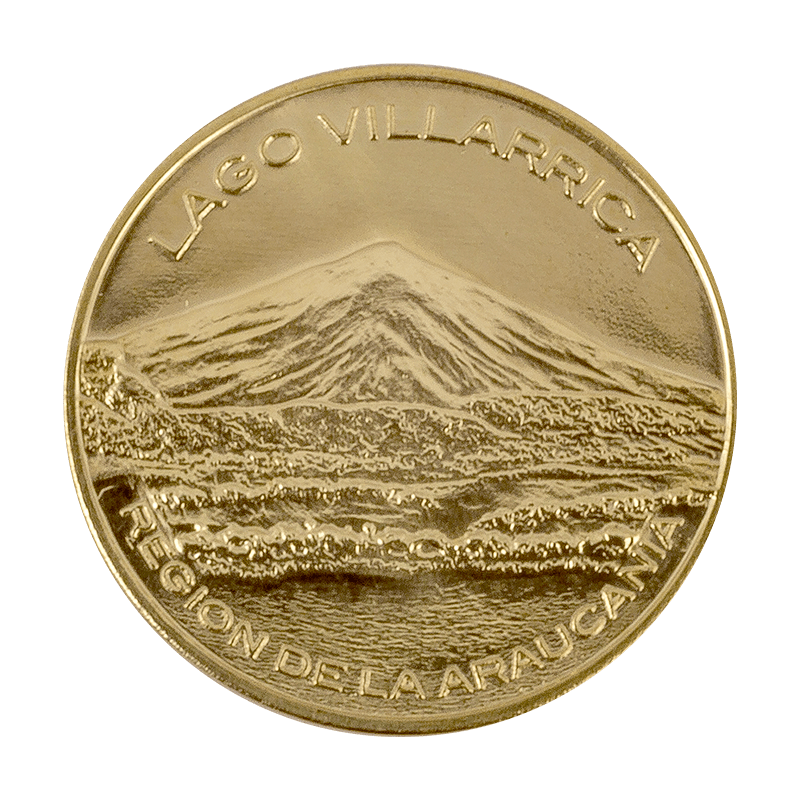 Esta ficha conmemorativa de 28 mm está dedicada al Lago Villarrica, uno de los paisajes más emblemáticos del sur de Chile. Rodeado de frondosos bosques, volcanes imponentes y encantadores pueblos como Pucón y Villarrica, este lago es un verdadero símbolo de la belleza natural de la Región de La Araucanía.